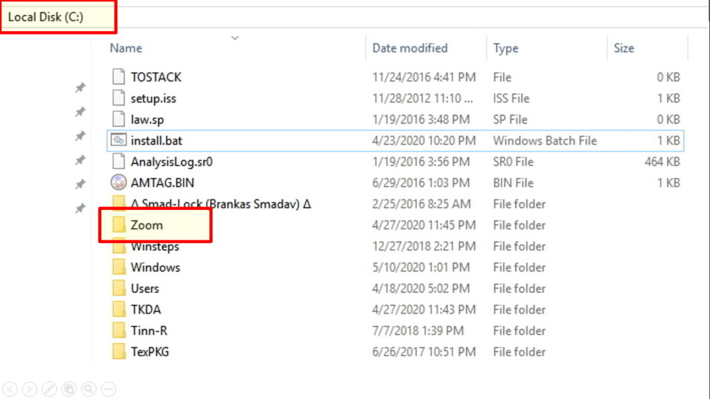 Jika sudah dilakukan instalasi, cek apakah pada Drive C: Anda sudah terdapat file Zoom seperti pada gambar di bawah ini.