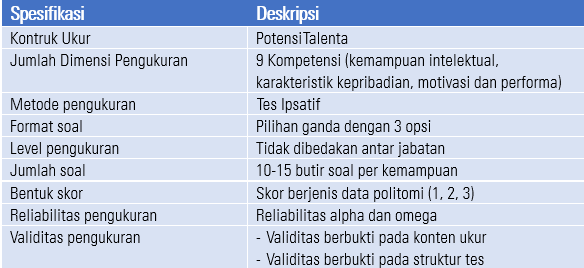 Tabel 1. Spesifikasi Tes Potensi Talenta